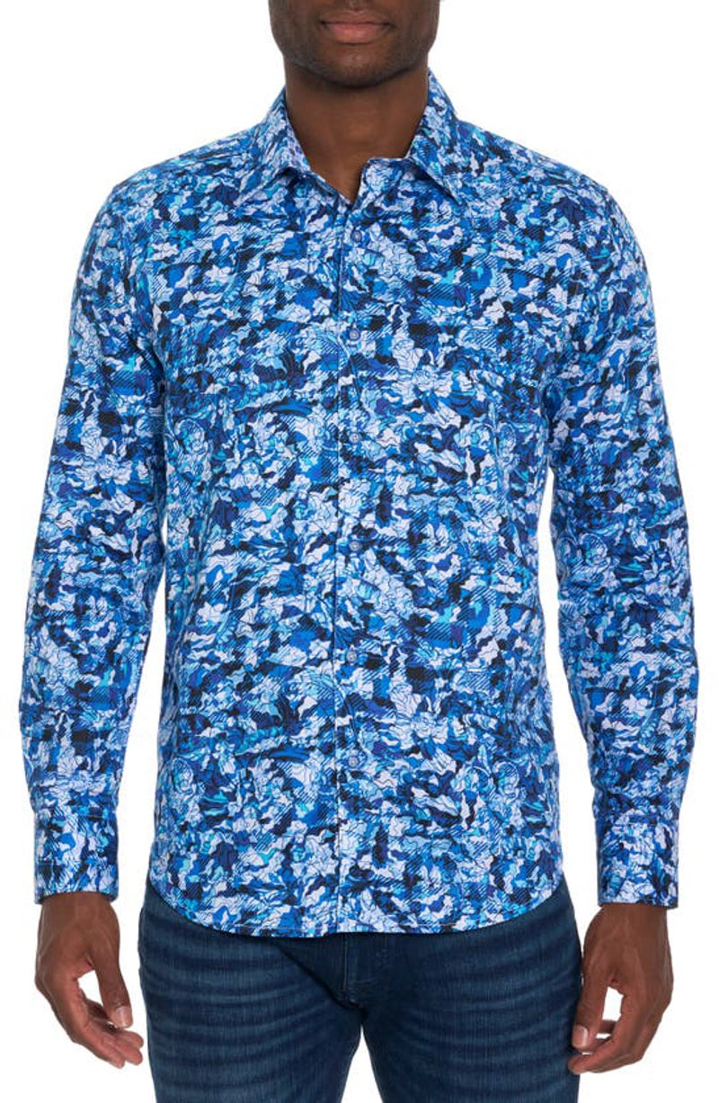 Be bold and make a statement with the Banbury Button Up Shirt Navy by Robert Graham. With a beautiful abstract print, this wearable art is the perfect combination of blue and white. Dare to be daring!