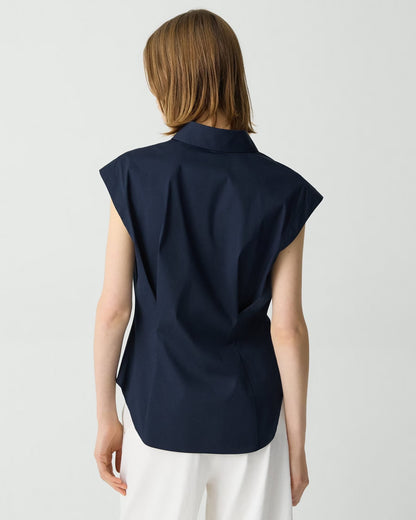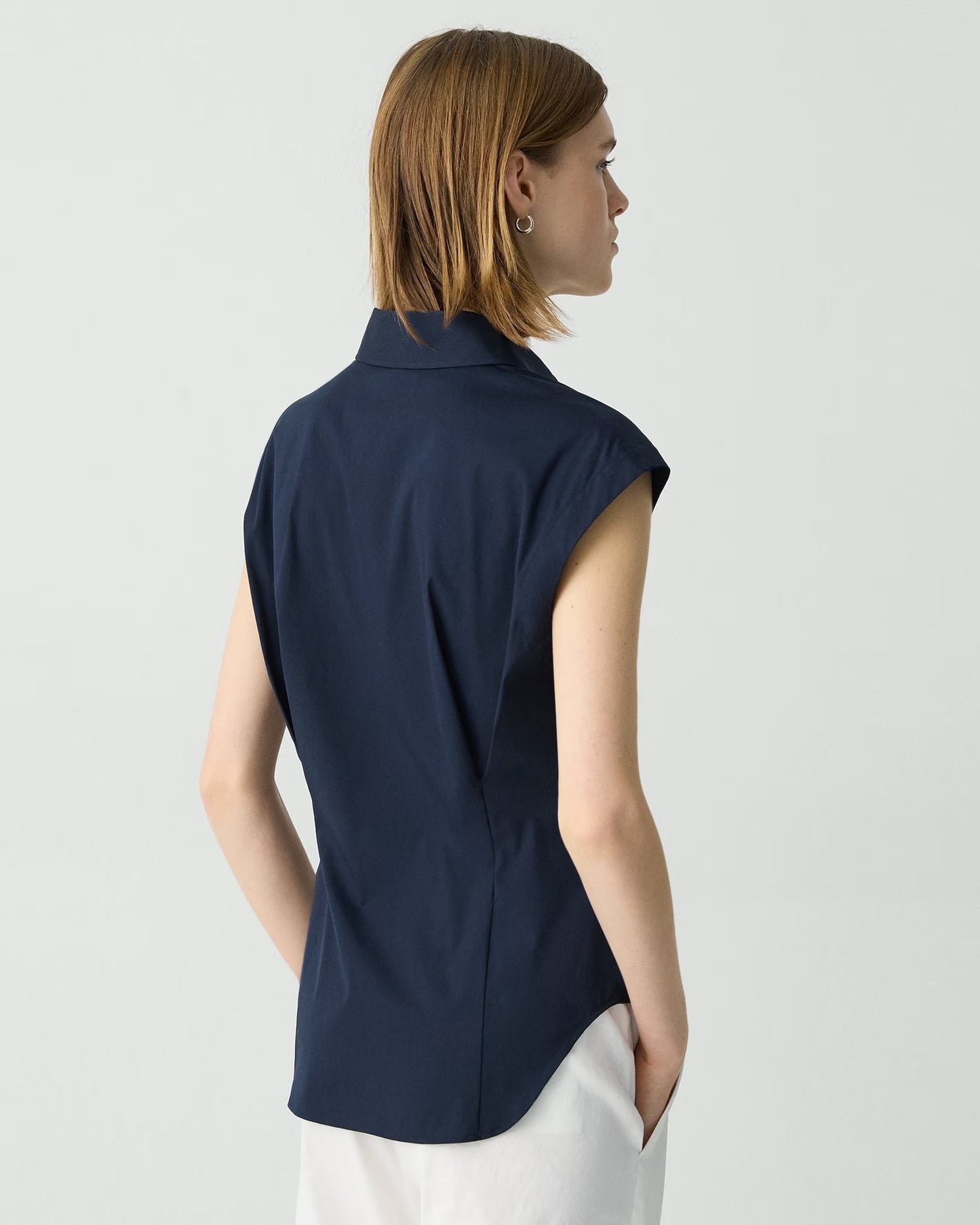 Cinched Cap Sleeve Shirt Good Cotton New Navy - Theory Women