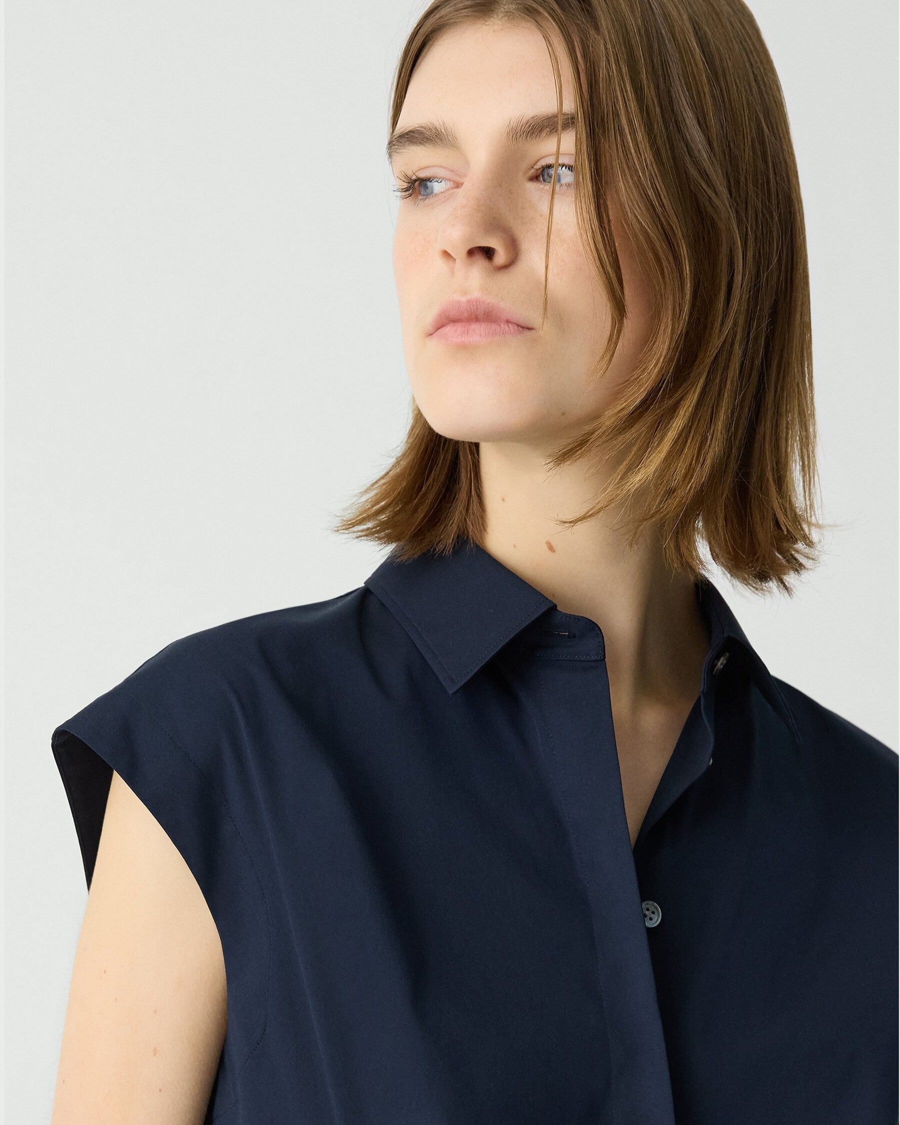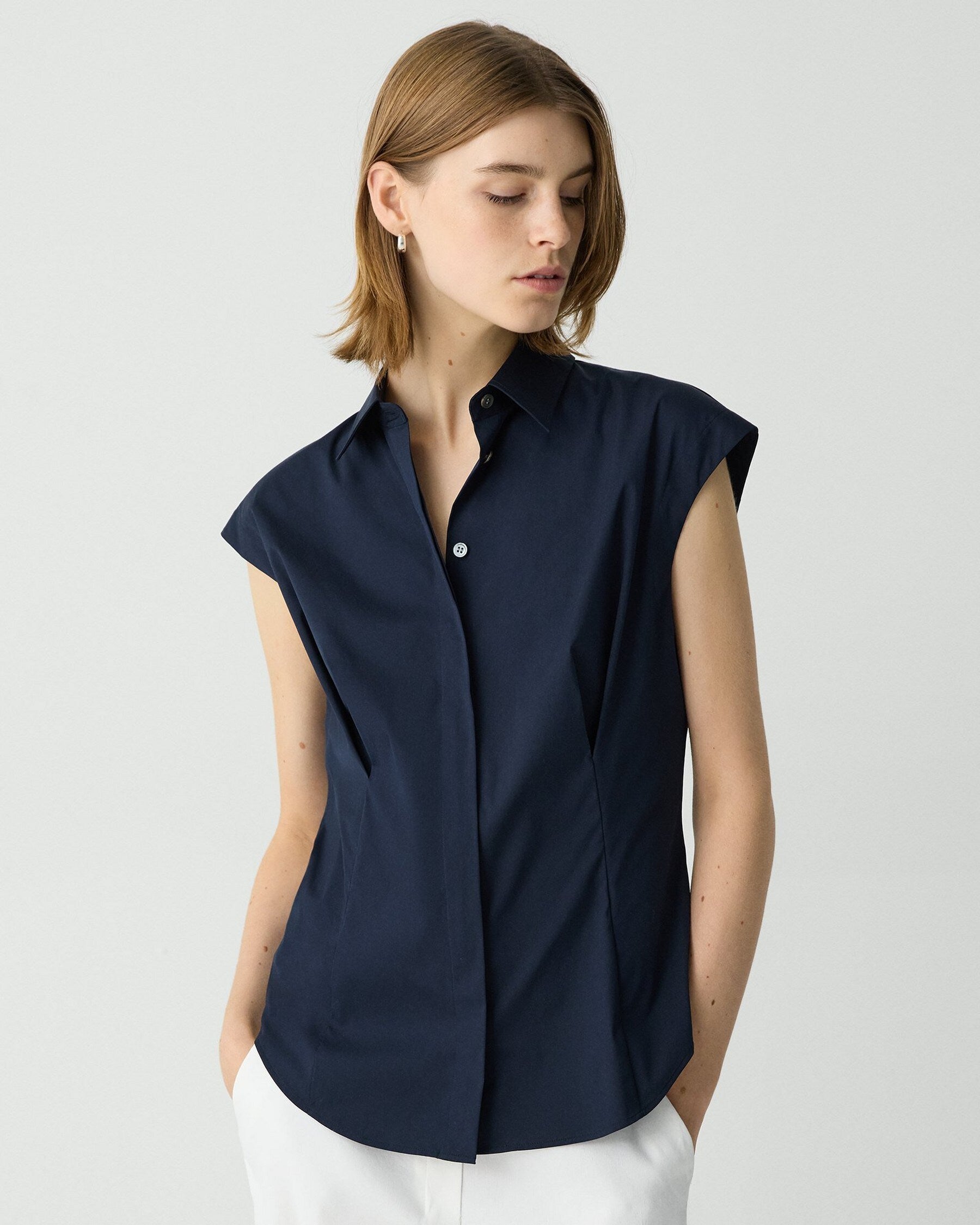 Unleash your inner fashionista with Theory's Cinched Cap Sleeve Shirt! This slim-fitting button-front shirt accentuates your waistline and brings a polished look with its pointed collar. Made with extra-soft Good Cotton, this shirt is perfect for year-round comfort. Plus, you can feel good knowing it's made with SUPIMA® cotton, one of the softest and most durable cottons in the world.