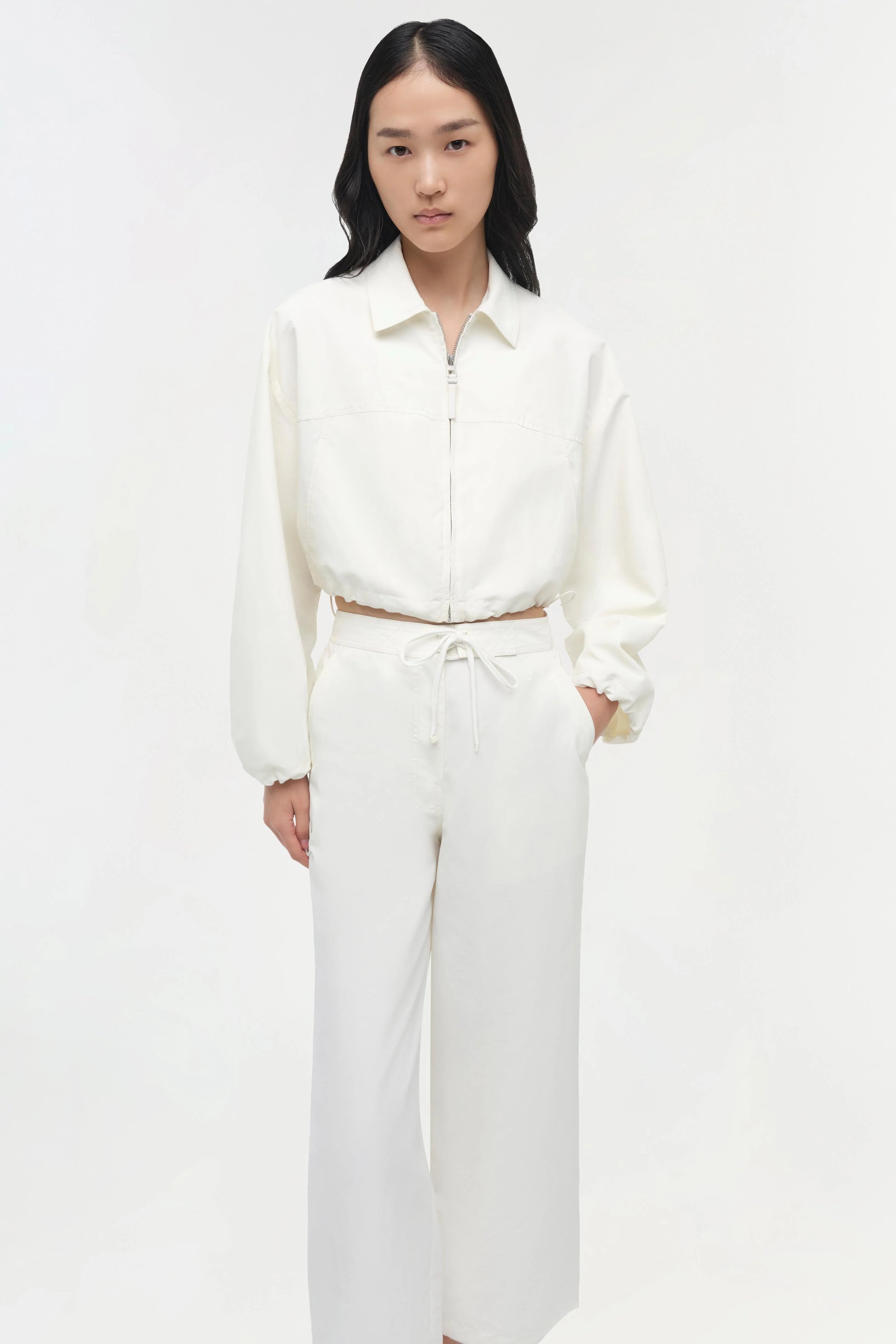 The Colsen Cropped Jacket in White delivers effortless sophistication with its boxy, relaxed silhouette. This piece features tonal seams and gentle volume through the hem that creates a flattering, structured silhouette. Perfect for layering or wearing solo, it's a versatile wardrobe essential that transitions seamlessly from day to night.
