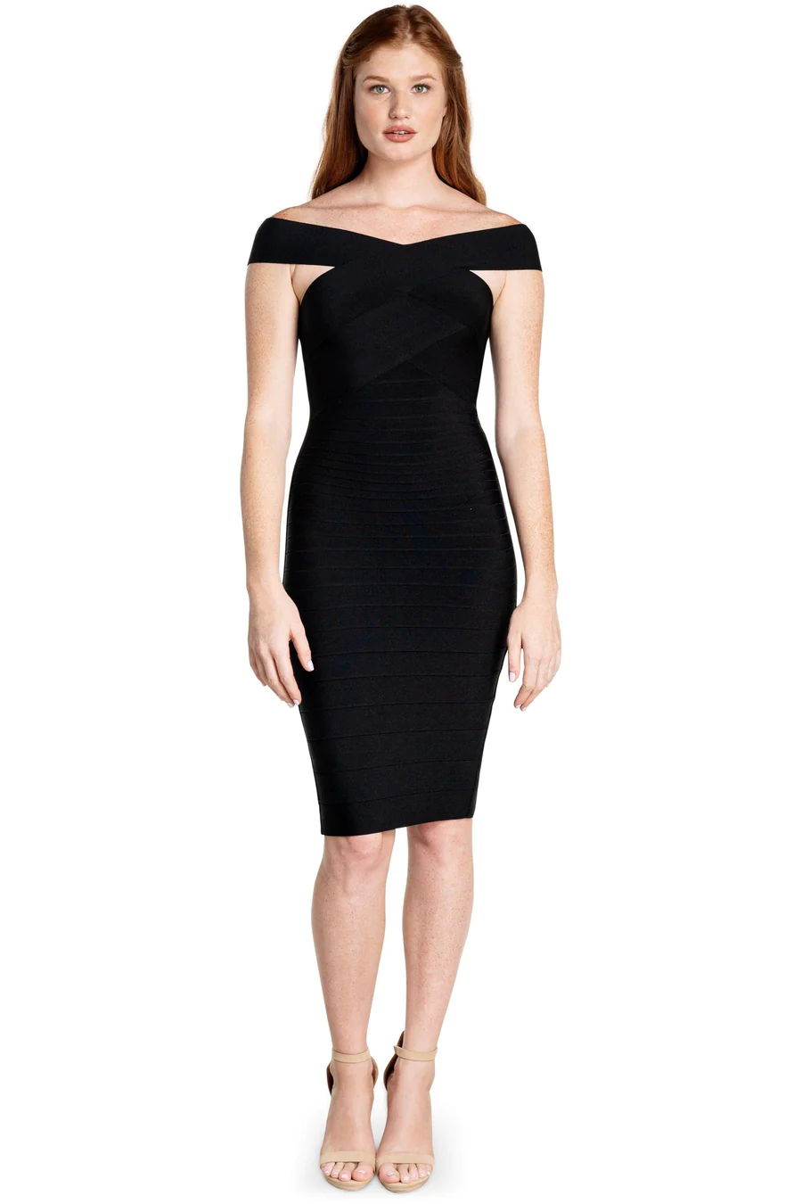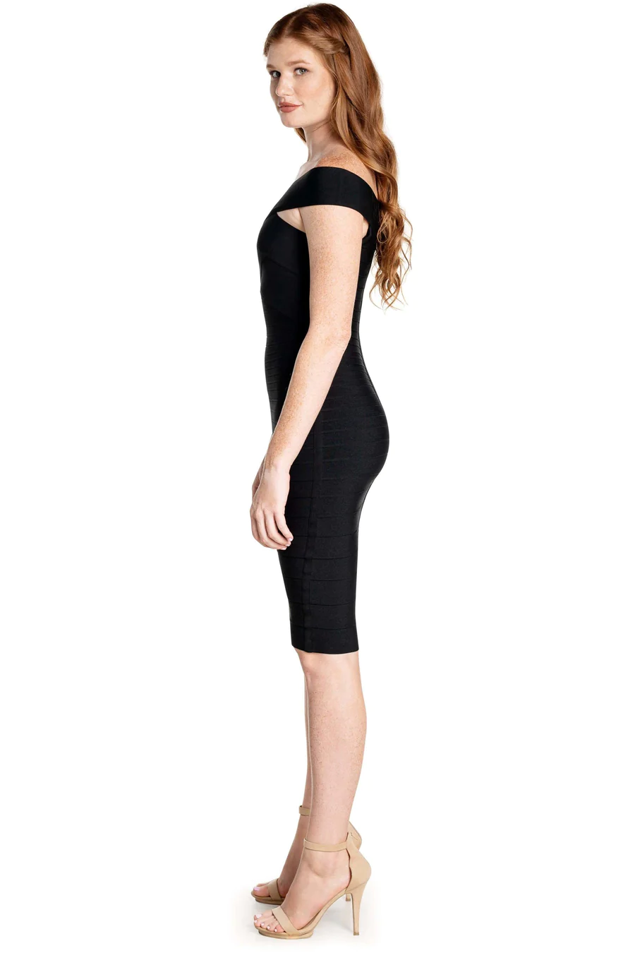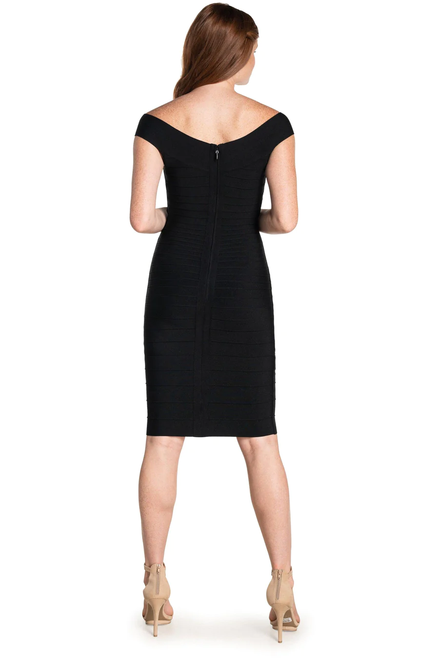 Discover unparalleled glamour and comfort with the Maia dress from Dress The Population. This figure-hugging beauty features a flattering, bateau-neckline combined with off-the-shoulder details for an alluring yet sophisticated look. With its stretchy, body-con fit, you’ll feel confident and comfortable wherever the night takes you!