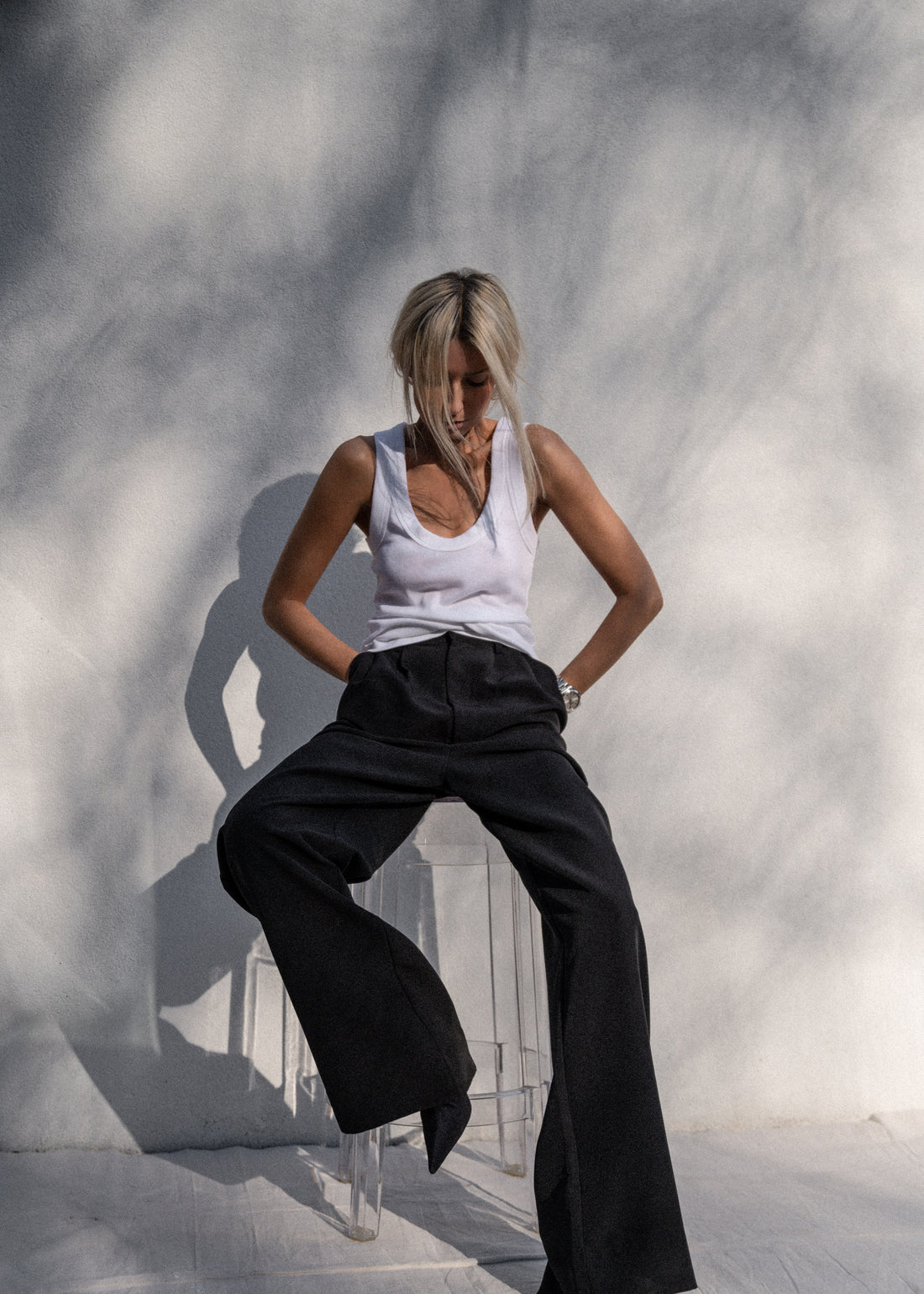 The perfect trousers for any occasion - Gentry Trousers Black - Sundays! Crafted from lux stretch gabardine fabric, they feature a flattering wide-leg design that looks chic whether you're out on the town or running errands. Make a sophisticated statement and add a touch of flair to your wardrobe with the Gentry Trouser collection!