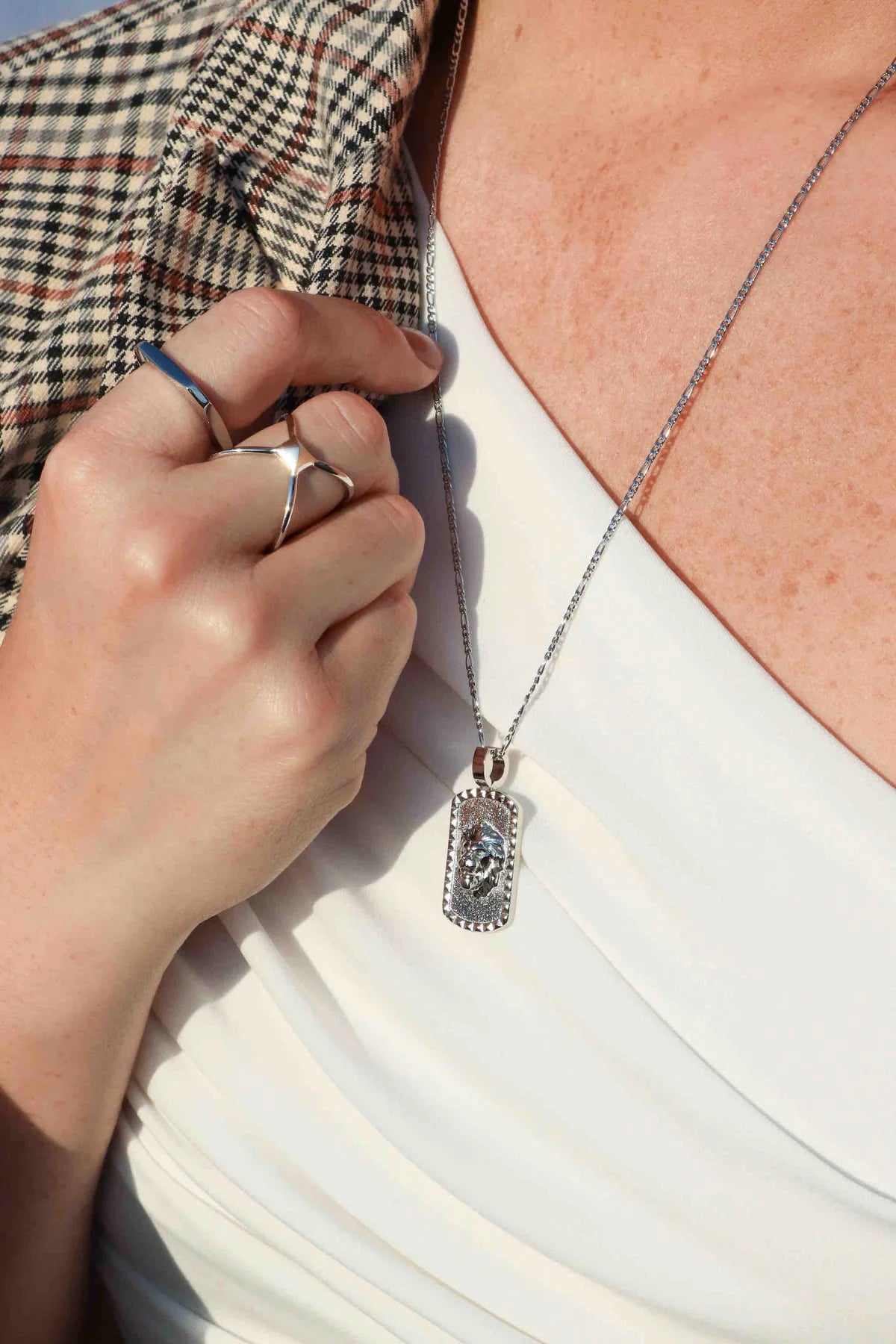 Add some edge and effortless style with the Jordan Ring Silver by Marrin Costello. Featuring a signature Melrose Stud motif, this multi-functional cocktail ring is perfect for every finger, including your thumb. Bold yet delicate, it will become your go-to statement piece.