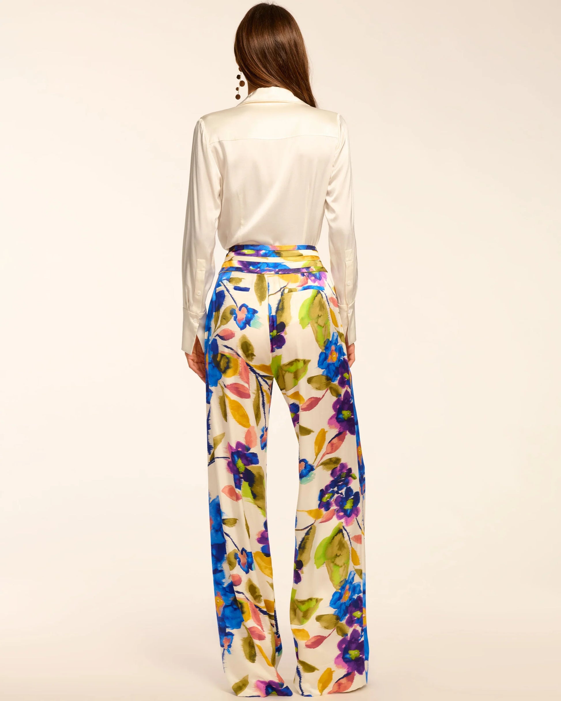 Joss Printed Silk Wide Leg Pant Ivory Floral