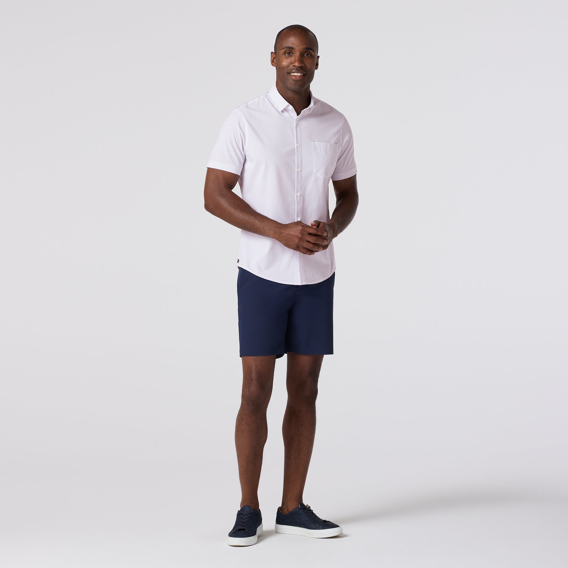 Stay cool and sharp in the Leeward Short Sleeve Mulberry Double Diamond shirt from Mizzen + Main. This lightweight, wrinkle-resistant shirt features the same high-performance fabric as its long-sleeve counterpart, with a hidden button-down collar that keeps things casual yet polished. Perfect for warm days when you want to look effortlessly put together without the fuss.