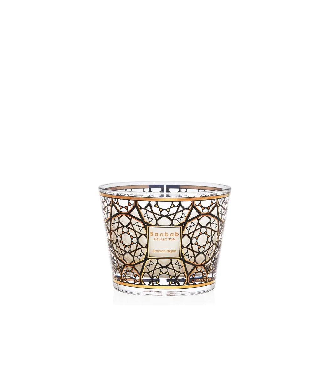 Embrace the enchantment of the Middle East with our Max 10 Dome Arabian Nights candle. The intricate 9 carat gold screen-printing on the glass evokes the beauty of Arab architecture. As the flame dances behind the glass, it casts a mesmerizing shadow, creating a truly captivating experience. Order now and be transported to a world of mystery and allure!