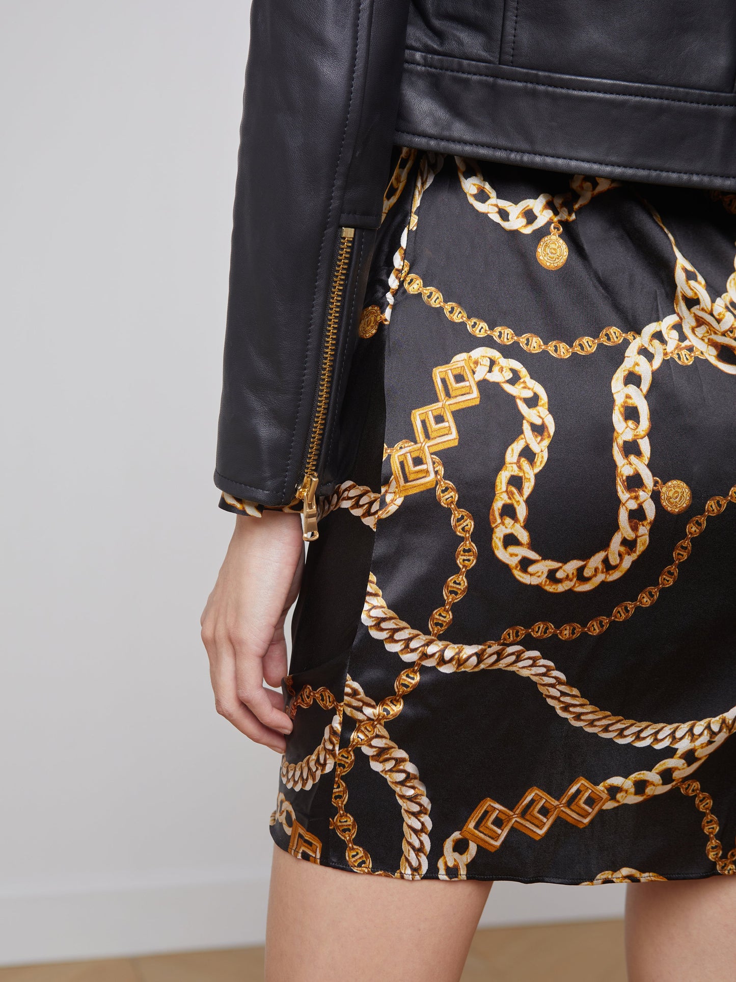 Break away from the mundane in L'AGENCE's Onna Leather Jacket. Crafted from luxe black leather, this fitted biker jacket features gleaming gold zippers and pockets to add a touch of sophistication. Its flattering silhouette from shoulder to cropped waist instantly updates your look. Elevate your wardrobe with this timeless staple.
