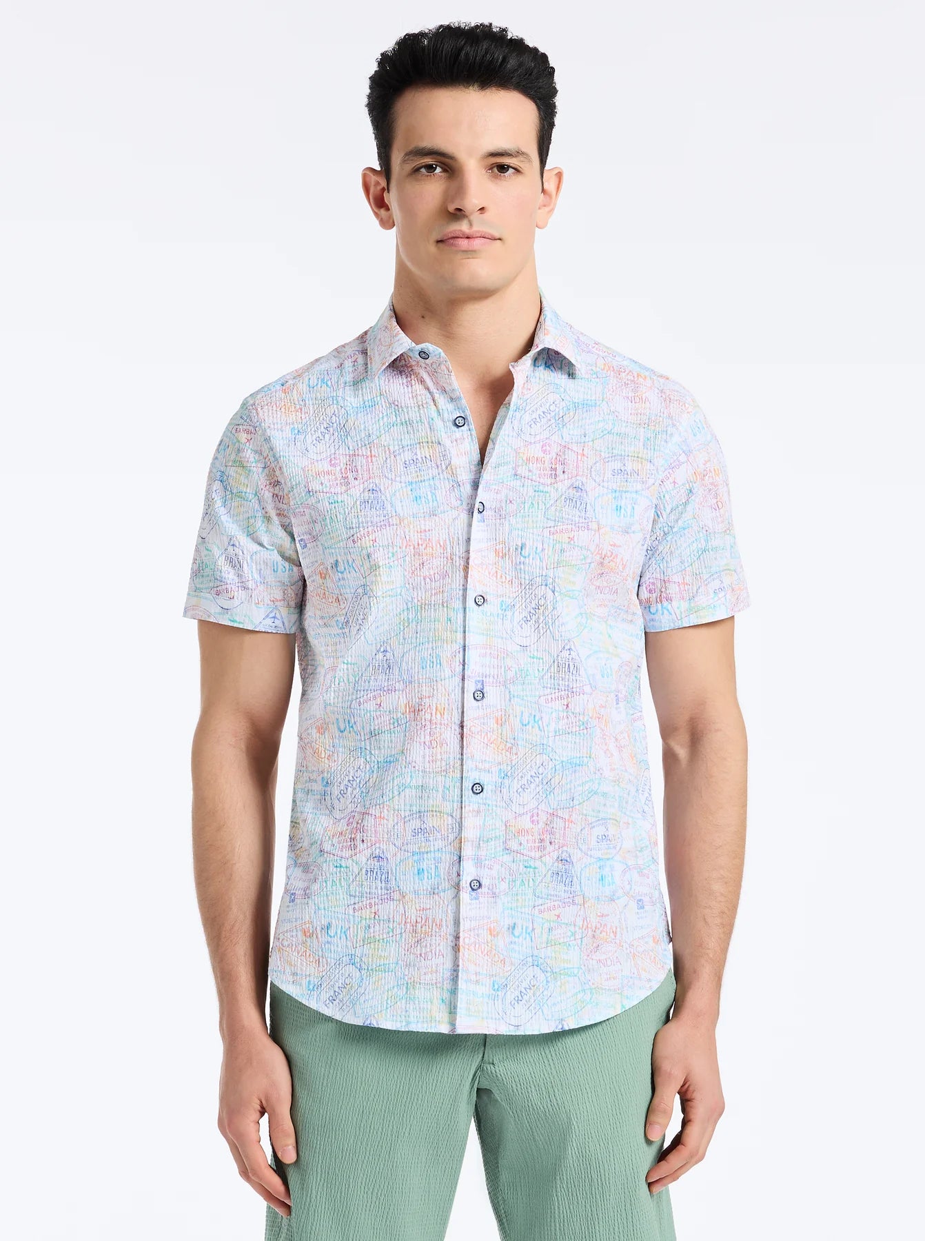 Passport Short Sleeve Button Down Shirt Multi - Robert Graham