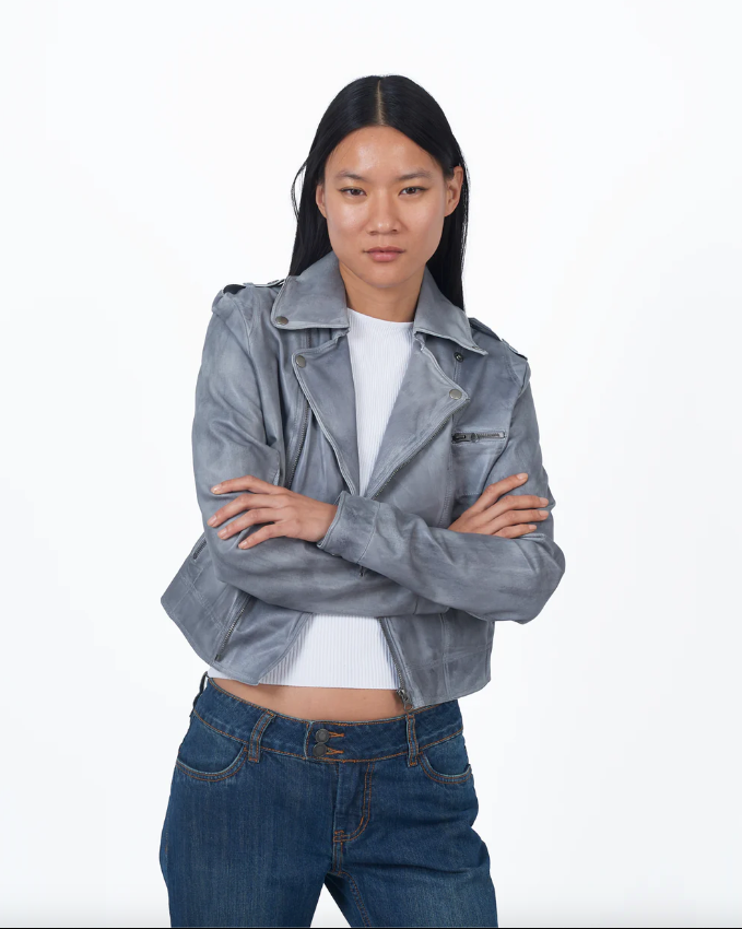 Get ready to rock the streets with the Piper Patina Leather Jacket! This slim fit jacket features an off center zipper for added style, along with a collar and zippered pockets for practicality. Long sleeves with zipper detailing add a touch of edge to this au lait colored jacket.