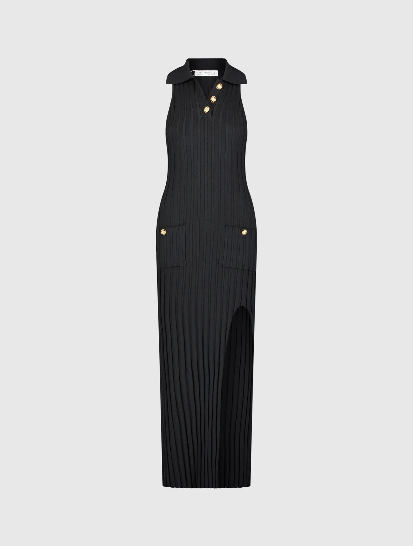 Rib Knit Collared Sleeveless Fitted Maxi Dress Black - MAC DUGGAL