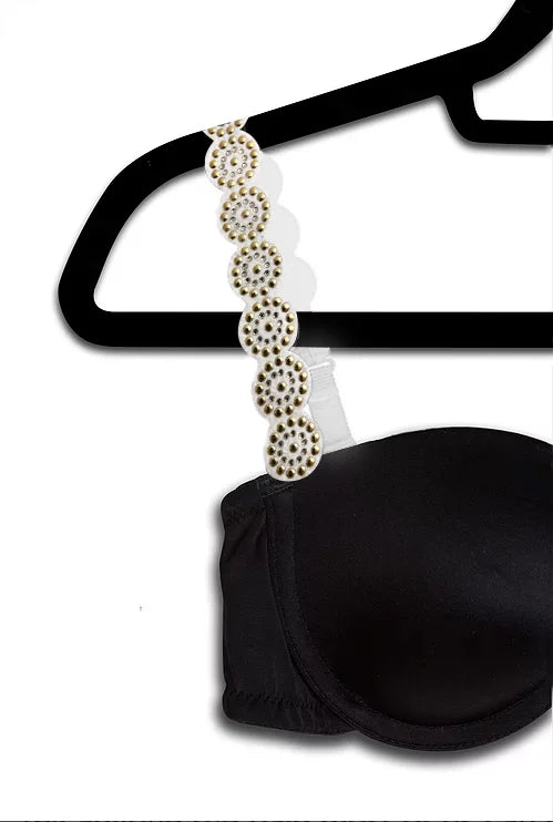 Black Plunge Bra With Gold Vegan Rockstuds - Strap-Its