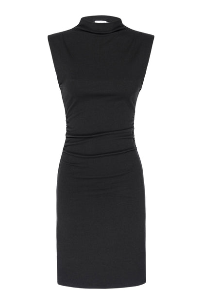 Super Stretch Jersey Mock Neck Mini Dress Black