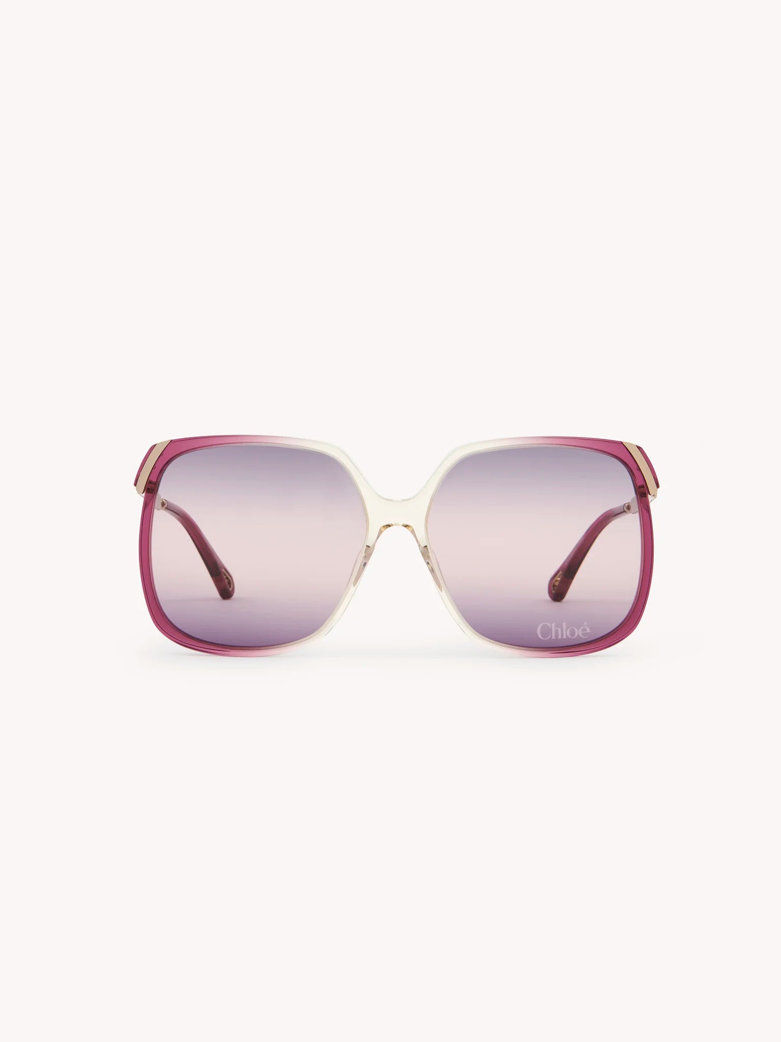 Shade up in style with Chloé's Women's Gradient Square Sunglasses. The square violet/burgundy frame adds a touch of boldness while the violet gradient lens offers a sleek look. Complete with gold temples and logo, these sunglasses are the perfect accessory for any outfit.