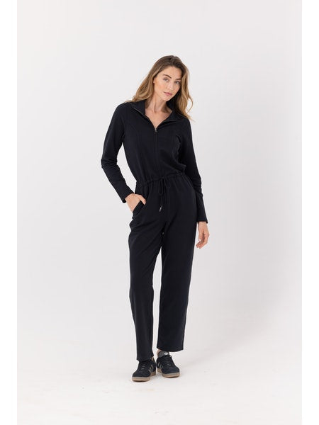 Look your best in the Zaria Jumpsuit - a stylish staple for any wardrobe. With a sleek half-zip design and adjustable drawstring at the waist for custom fit, you're sure to make a statement in this must-have piece. Plus, its two pockets add an extra touch of utility. Perfect for any casual or dressy occasion. Make Sundays memorable with Zaria!